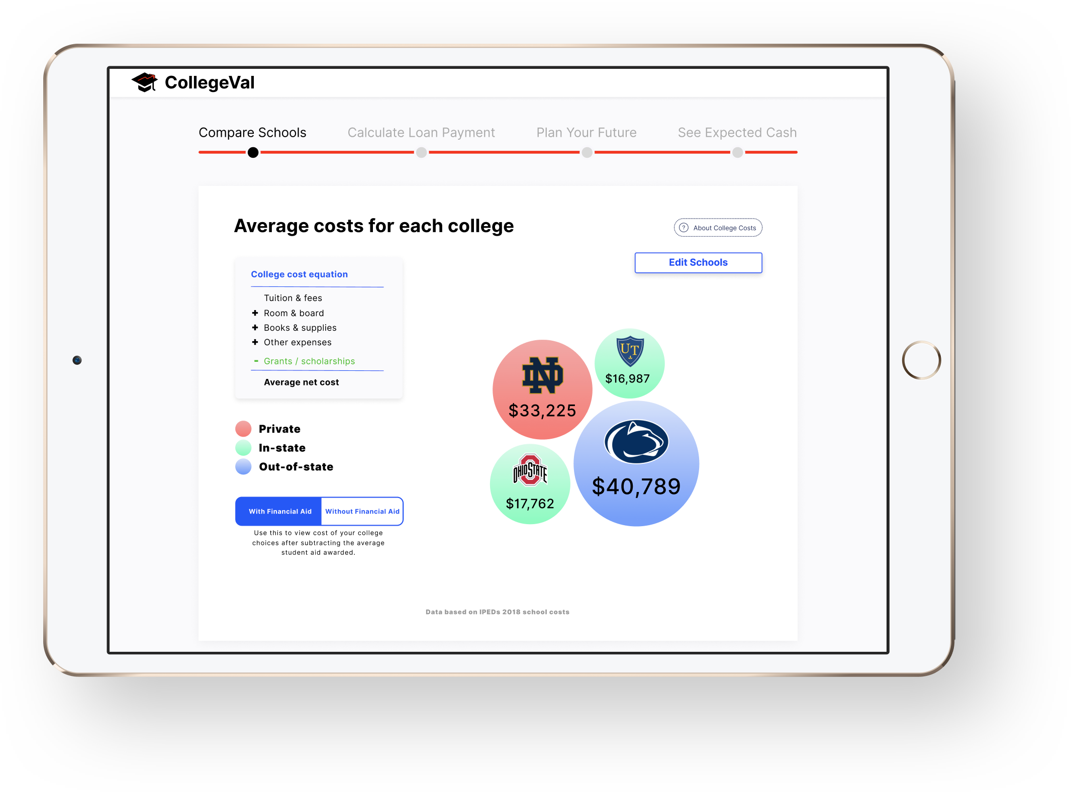 The application helps students and parents make more informed decisions related to college choices to ultimately reduce student loan debt.