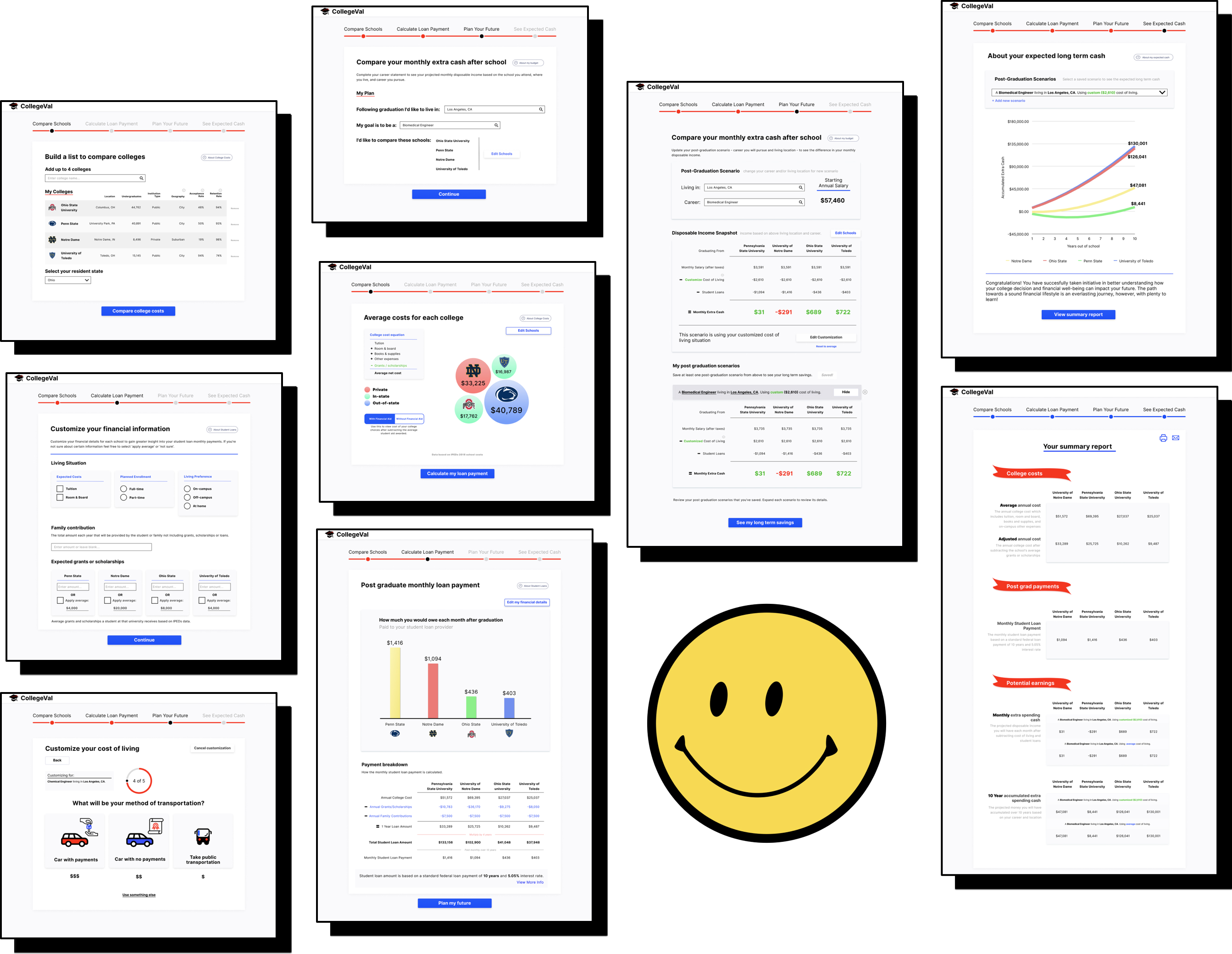 I designed a student loan financial wellness platform for high school students and their parents that provides a perspective of the financial implications of the many financial, career, and lifestyle decisions they make around higher education.