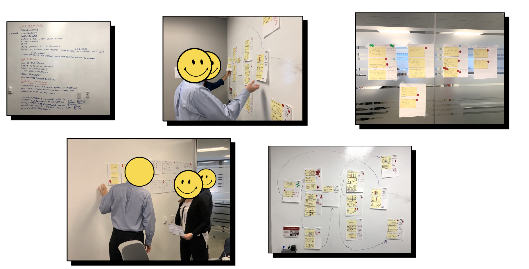 I co-facilitated a design sprint workshop that brought subject matter experts together. I led the team in creating personas, building a customer journey map, sketching, and voting on concepts.